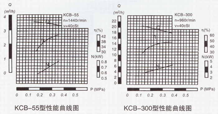 各型齒輪泵的性能參數(shù),是在介質(zhì)粘度4×10-5m2/s(40cSt)時(shí)確定的。性能參數(shù)表中給出的參數(shù)值適用于介質(zhì)粘度1×10-5~8×10-5m2/s(10~80cSt)范圍內(nèi),超出這個(gè)范圍則根據(jù)用戶提出的性能參數(shù)要求另行確定。 各型齒輪泵性能參數(shù)中給出的排出壓力是給出的最大工作壓力值,在此范圍內(nèi)泵均能正常工作,其工作范圍見(jiàn)下圖。 |